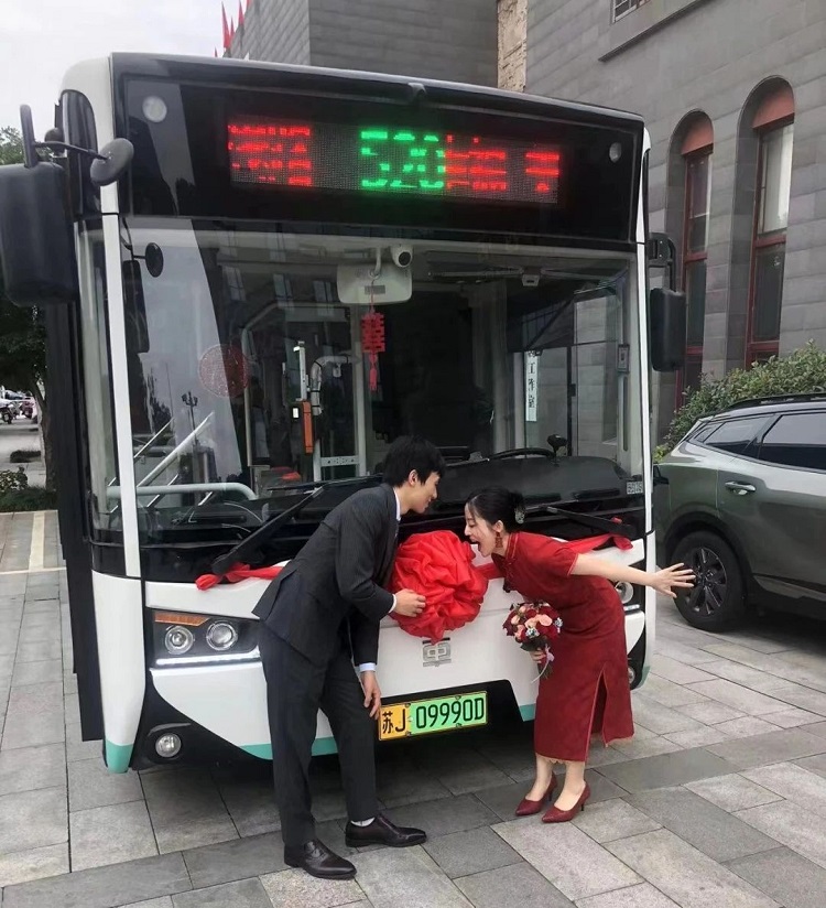“租公交車作為婚車去接親,熱鬧又喜慶,很特別也很有意義!”近兩個月鹽城公交一分公司已完成4對新人的“公交婚車”訂單,比去年全年業(yè)務(wù)量還多,另有多筆業(yè)務(wù)訂單在洽談中,公交婚車成為越來越多新人的接親新選擇,引領(lǐng)著綠色出行新時尚。