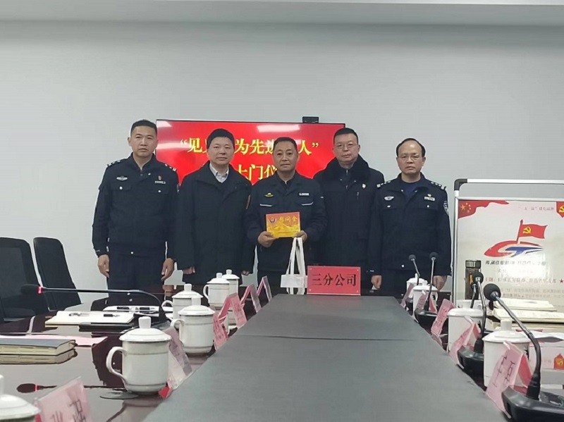 為弘揚(yáng)見(jiàn)義勇為精神,獎(jiǎng)勵(lì)見(jiàn)義勇為人員,12月7日上午,鹽城市公安局經(jīng)濟(jì)技術(shù)開(kāi)發(fā)區(qū)分局政治處主任徐愛(ài)兵、市公安局公共交通治安分局副局長(zhǎng)吉春勇一行來(lái)到市公交三分公司開(kāi)展“送獎(jiǎng)上門(mén)”活動(dòng),為公交駕駛員吳浩送上“見(jiàn)義勇為”慰問(wèn)金。市公交公司黨委副書(shū)記、工會(huì)主席夏建龍、副總經(jīng)理李正東熱情接待。