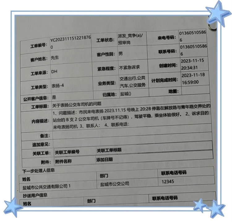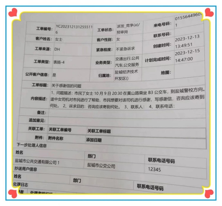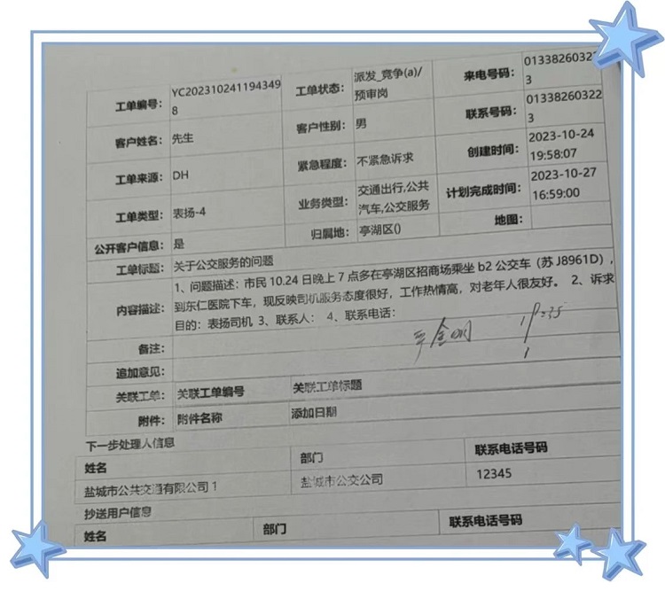 工單紙薄,民意深厚,總有一些暖心事將人與人相連接。這一份份表揚(yáng)工單,代表著市民群眾對(duì)公交工作的滿意和認(rèn)可,是司乘情深的見證,更是對(duì)公交人的鼓勵(lì)和鞭策,激勵(lì)一代代公交人牢固樹立“群眾滿意就是第一標(biāo)準(zhǔn)”的理念,用實(shí)際行動(dòng)踐行“服務(wù)民生暖心人”的承諾和使命。