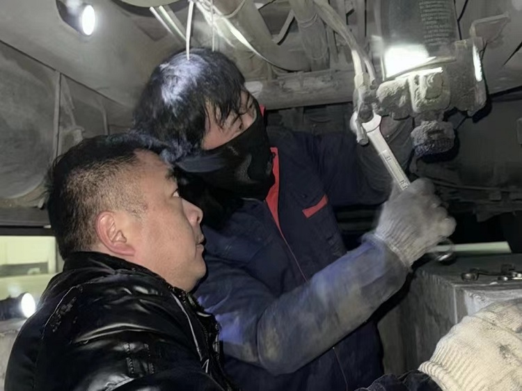 夜間公交車回場后,修理人員冒著零下幾度的低溫,對每一輛公交車進行更換防凍液、干燥筒,并檢查氣路管路排污情況,防止因冰凍導(dǎo)致車輛趴窩,保障市民正常乘坐公交車出行。
