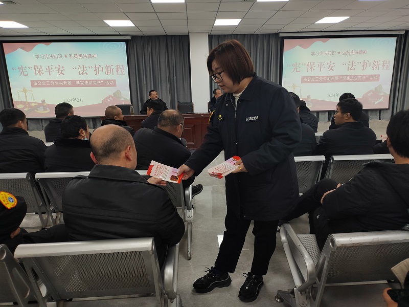 此次普法宣傳活動的開展,進(jìn)一步加深了職工對憲法的認(rèn)識,幫助職工牢固樹立尊法學(xué)法守法用法的良好意識。下一步,市公交三分公司將不斷創(chuàng)新工作方式與方法,縱深推進(jìn)法治宣傳教育工作,切實從源頭有效防范化解風(fēng)險隱患,為“平安公交”建設(shè)提供堅強的法治保障。