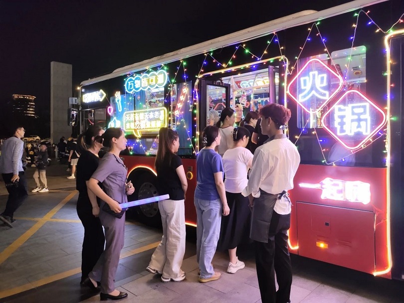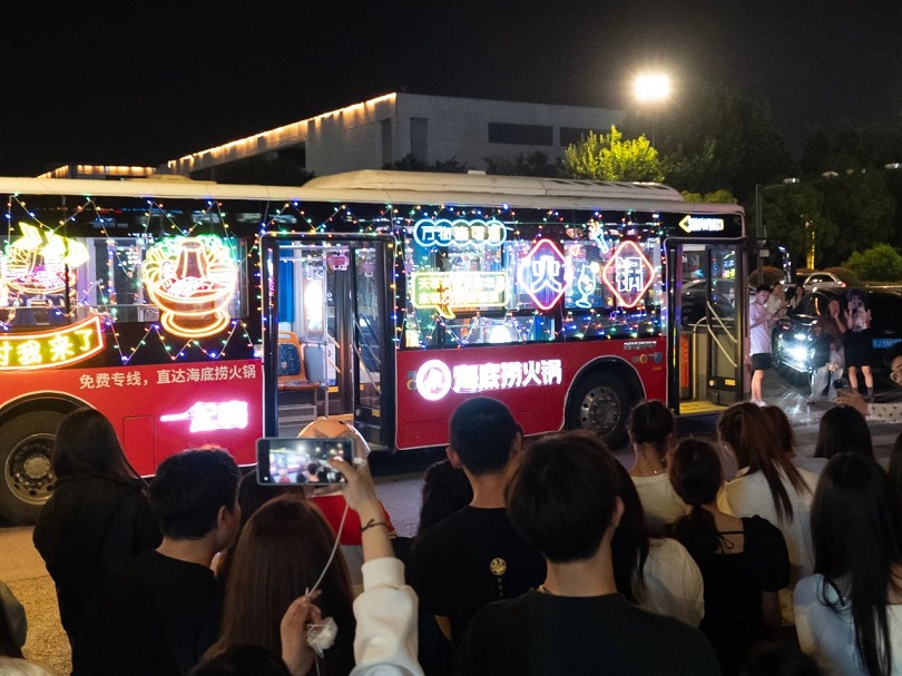 酷炫的外觀、勁爆的音樂、涌動的人潮……5月17日晚,一輛酷炫的海底撈“電音巴士”行駛在市區(qū)街道上,憑借炫酷的外觀和超嗨的內(nèi)場,成為一道亮麗的風(fēng)景線,引得市民紛紛駐步觀看拍照,成為名副其實(shí)的“顯眼包”,燃爆我市夜經(jīng)濟(jì)。