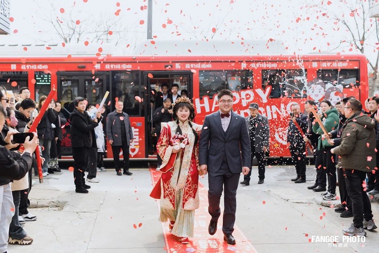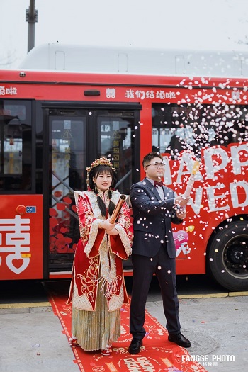 “我喜歡熱鬧,有很多同學(xué)和朋友專程從外地趕來(lái)參加我的婚禮,定制一輛公交婚車,就是希望和他們一起分享我最幸福的喜悅”。