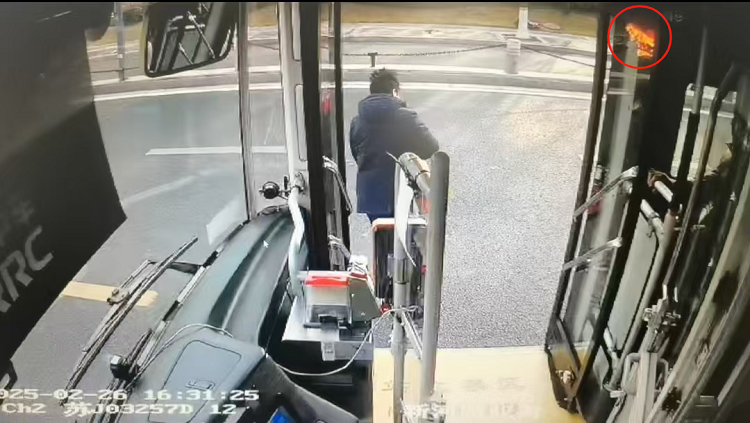2月26日下午4點(diǎn)32左右,朱師傅駕駛12路公交車(chē)由北向南行駛至水街附近時(shí),遠(yuǎn)遠(yuǎn)看到前方有濃煙升起,駛近后發(fā)現(xiàn)非機(jī)動(dòng)車(chē)道上有一輛電瓶車(chē)正在自燃,火勢(shì)兇猛,情況危急朱師傅沒(méi)有絲毫猶豫,他立即拉好手剎,將公交車(chē)穩(wěn)穩(wěn)停好,隨后拿起車(chē)載滅火器沖向自燃的電瓶車(chē)。