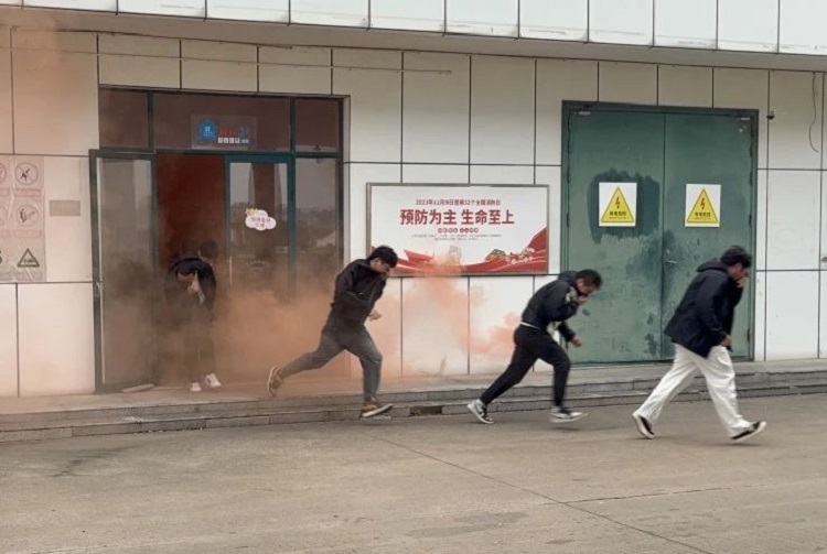 演練最后環(huán)節(jié)模擬了職工驛站突發(fā)火情場景。隨著警報響起,濃煙迅速彌漫,參演職工迅速用濕毛巾捂住口鼻,彎腰沿安全通道有序撤離至指定集合點。整個過程分工明確、行動高效,僅用時2分鐘便完成全員疏散。隨后,應急小組對火源撲救、傷員救助等環(huán)節(jié)進行了復盤,進一步完善了應急預案的細節(jié)。