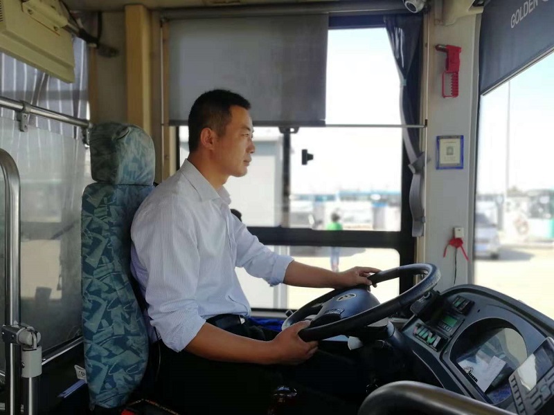 10月6日早晨5點40分左右,公交3路線駕駛員唐海軍早早來到范公路公交停車場,著手準(zhǔn)備一天的工作!肮3路線早班車發(fā)車時間為6:00,晚班車時間為18:30,由五星客運站發(fā)往龍岡黃莊,全程26公里,每天要開5個來回!碧坪\娬f,由于家里距離停車場較遠(yuǎn),而且還要把車從停車場開到五星客運站發(fā)車,他每天早上5點就要出門,晚上回到家已是8點多。
