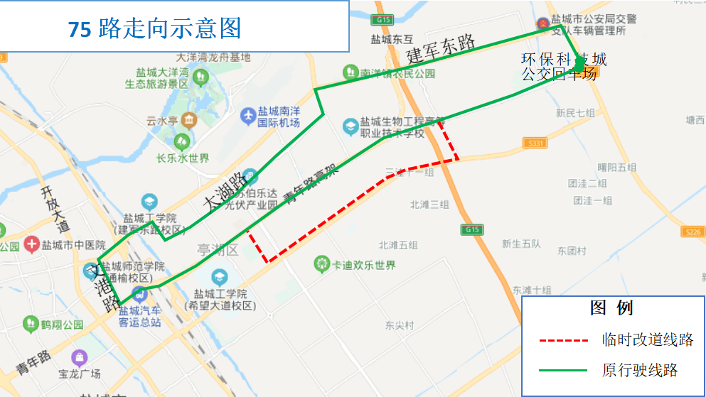 沿途站點(diǎn):環(huán)保科技城公交樞紐、鹽城警校、環(huán)保會(huì)展中心、中國(guó)菲達(dá)、中科重工、萬(wàn)邦達(dá)、紹林六組、生物工程學(xué)院、青墩連接線(xiàn)、北陵村、躍進(jìn)路、亭湖高級(jí)中學(xué)、亭湖區(qū)人民醫(yī)院、綠地商務(wù)城、亭湖行政中心、鹽城工學(xué)院、鹽城汽車(chē)客運(yùn)站、黛安芬公司、五星小區(qū)、技師學(xué)院、新四軍紀(jì)念館、天山路建軍東路口、交警四大隊(duì)、太湖路長(zhǎng)亭路口、亭湖區(qū)教育局、太湖路希望大道、亭湖區(qū)住房建設(shè)局、太湖路東環(huán)路口、圣泰閥門(mén)、太湖路躍進(jìn)路口、太湖路蘭亭路口、新城衛(wèi)生服務(wù)中心、高新科技孵化區(qū)、太湖路青墩連接線(xiàn)、西牛橋、花木路、曙光村、南洋東方雅居、永固公司、沿海高速南洋出口、華東市場(chǎng)、富民市場(chǎng)、紫光集團(tuán)、環(huán)?萍汲恰⑸鷳B(tài)大道、市車(chē)管所、環(huán)保科技城公交樞紐。