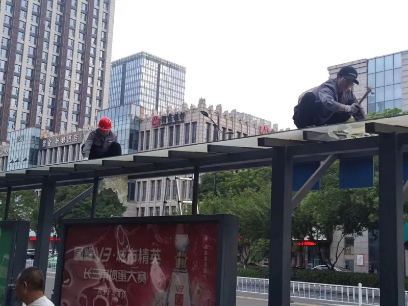 雨情就是命令,安全就是責任。公交服務公司立即對接有關職能部門,辦理施工審批手續(xù),加快對3座公交候車亭進行改造出新。目前,中國銀行站南北2座站臺頂棚已完成改造,飛馳新天地站西側站臺已完成改建出新。