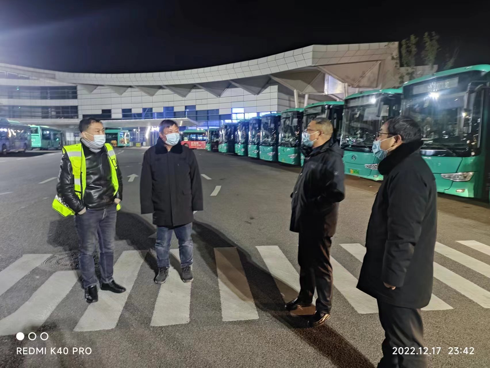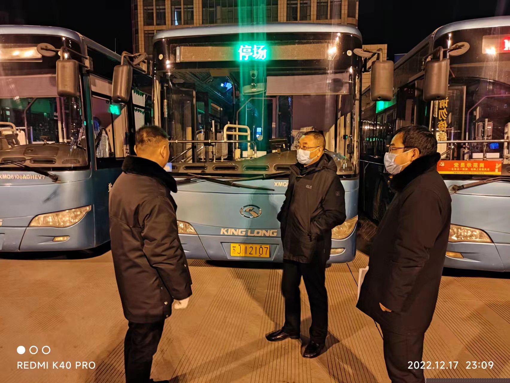 17日深夜11點多,此時氣溫接近零下3℃。公司副總經理邵吉龍帶領機務技術部相關同志分別到青年路公交回車場、振興路公交回車場等8個場站開展拉網式檢查,重點從場站人員在崗、車輛維護保障、應急物資儲備、車輛夜間充電等方面,檢查防寒防凍應急預案執(zhí)行情況。