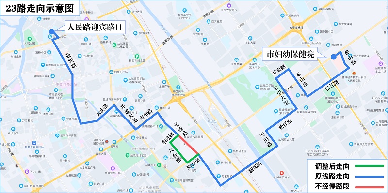 為方便六合路兩側(cè)居民出行,減少服務(wù)盲區(qū),鹽城公交于2023年1月1日調(diào)整優(yōu)化23路經(jīng)停六合路新建公交站臺(tái)。具體如下: