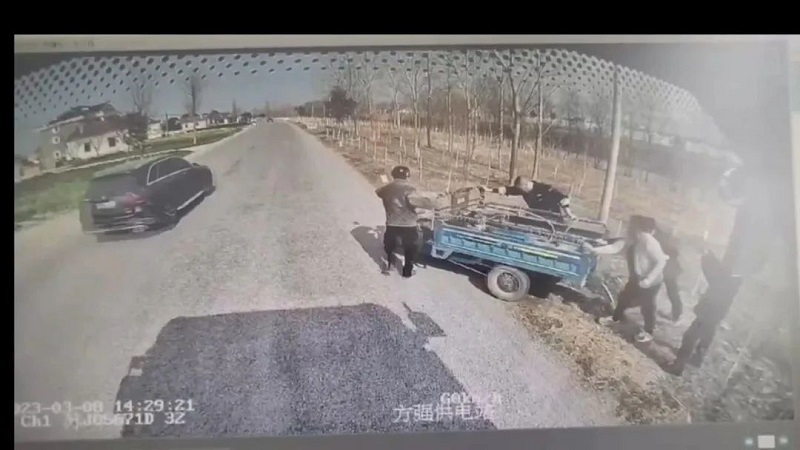 電動三輪車翻倒路邊 雷鋒線司機抬車救人