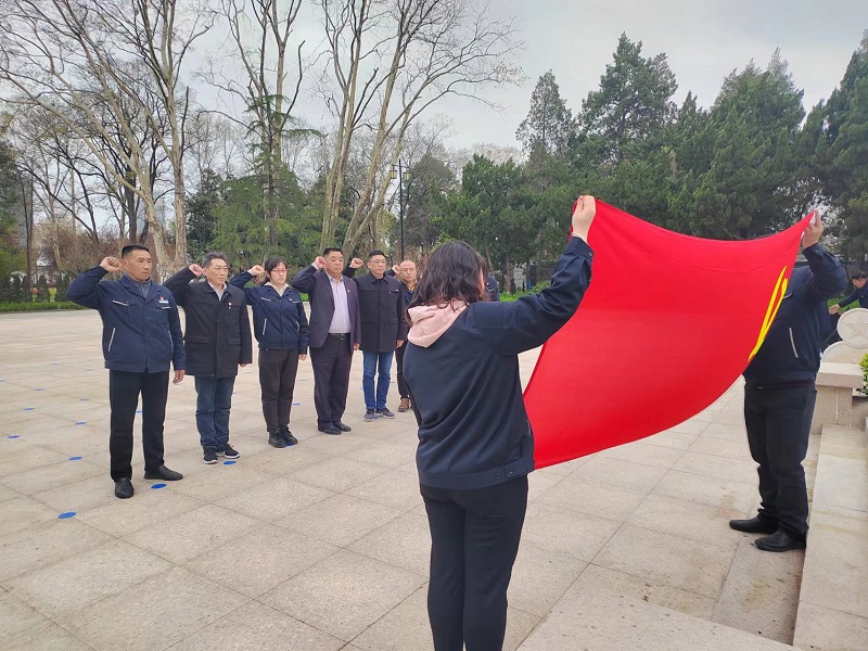 在黨支部書記唐正斌的領誓下,全體黨員面向鮮紅的黨旗,高舉右拳,重溫自己對黨忠誠的誓言,靈魂再一次得到凈化和洗禮,更加堅定全心全意為人民服務的初心使命,以莊嚴的宣誓向先烈表達繼承先烈遺志、永續(xù)奮斗的堅定決心。