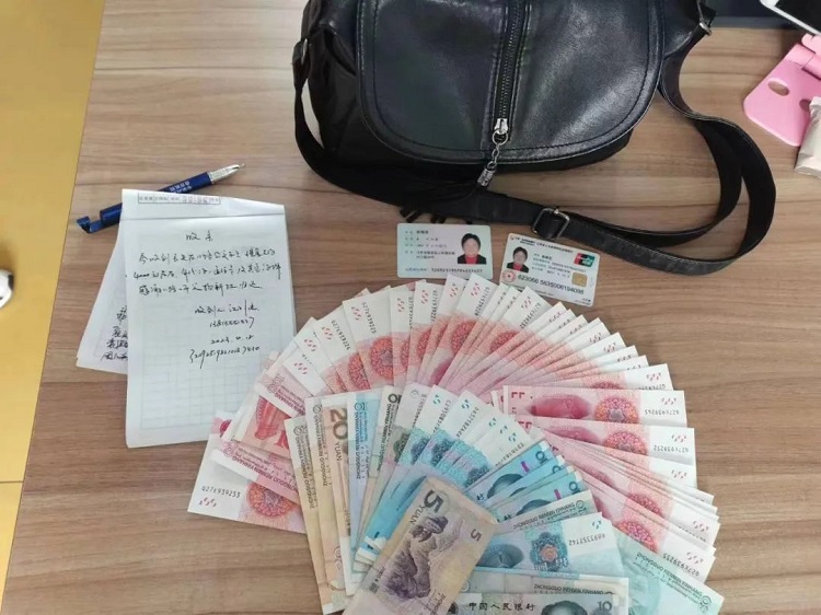 4月12日,11路公交車司機(jī)楊新林在終點(diǎn)站檢查車輛衛(wèi)生時(shí),在車廂內(nèi)發(fā)現(xiàn)一只女式包包,察看發(fā)現(xiàn)包里有4000元現(xiàn)金和一些證件。心想著失主一定很著急,他便仔細(xì)查看包內(nèi)物品,找到了一張核酸檢測卡片,上面留著一個(gè)電話號碼。楊師傅抱著試一試的態(tài)度撥通了電話,讓人驚喜的是接電話的正是失主徐國花老人。