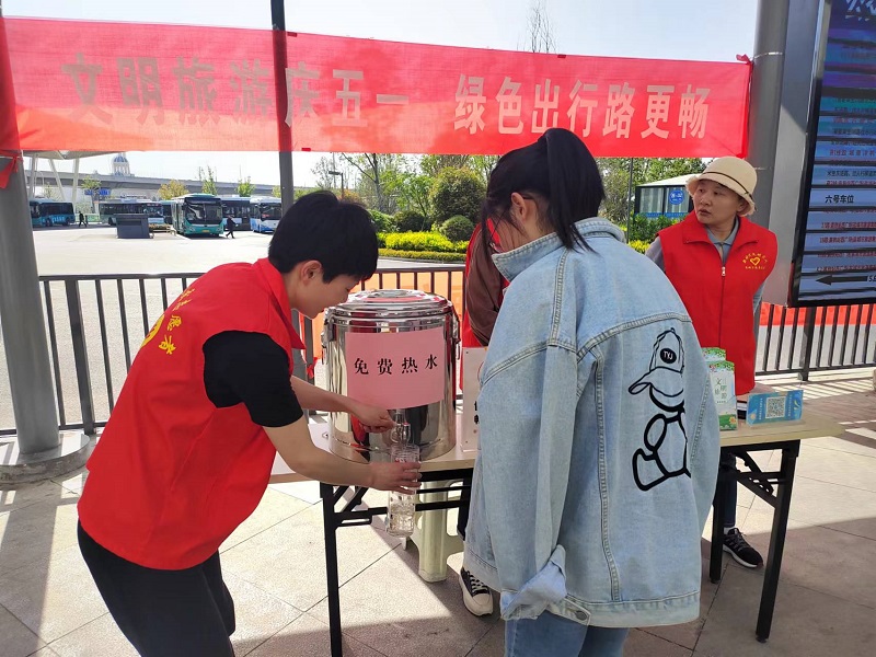 為有效緩解“五一”假期高鐵站旅客流量劇增導(dǎo)致的交通出行壓力,充分發(fā)揮志愿服務(wù)效能,營造文明有序、歡樂祥和的節(jié)日氛圍,5月1日,在國際勞動(dòng)節(jié)來臨之際,市公交服務(wù)公司黨支部在學(xué)雷鋒公交志愿服務(wù)站開展以“文明旅游慶五一 綠色出行路更暢”為主題的志愿服務(wù)活動(dòng),以實(shí)際行動(dòng)推進(jìn)志愿者服務(wù)常態(tài)化,讓文明旅游、綠色出行理念厚植人心。