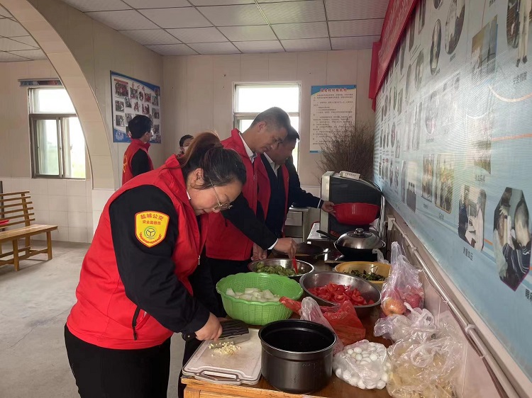 志愿者們一大早就帶著米、調(diào)料、食材和一次性飯盒來到了步鳳康復(fù)村。大家分工明確,各負(fù)其責(zé),洗番茄、切肉塊、拌黃瓜、炒雞蛋……廚房里一派熱火朝天景象。