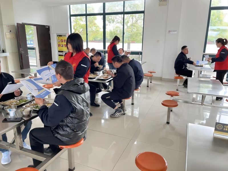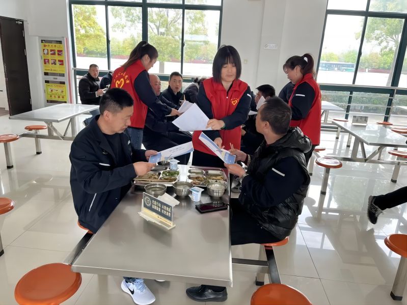 在職工食堂,工作人員向就餐職工發(fā)放倡議書,倡導(dǎo)養(yǎng)成科學(xué)飲食、節(jié)約糧食的好習(xí)慣,“讓光盤成為習(xí)慣,將節(jié)儉變成自然”,以“小餐桌”帶動“大文明”。