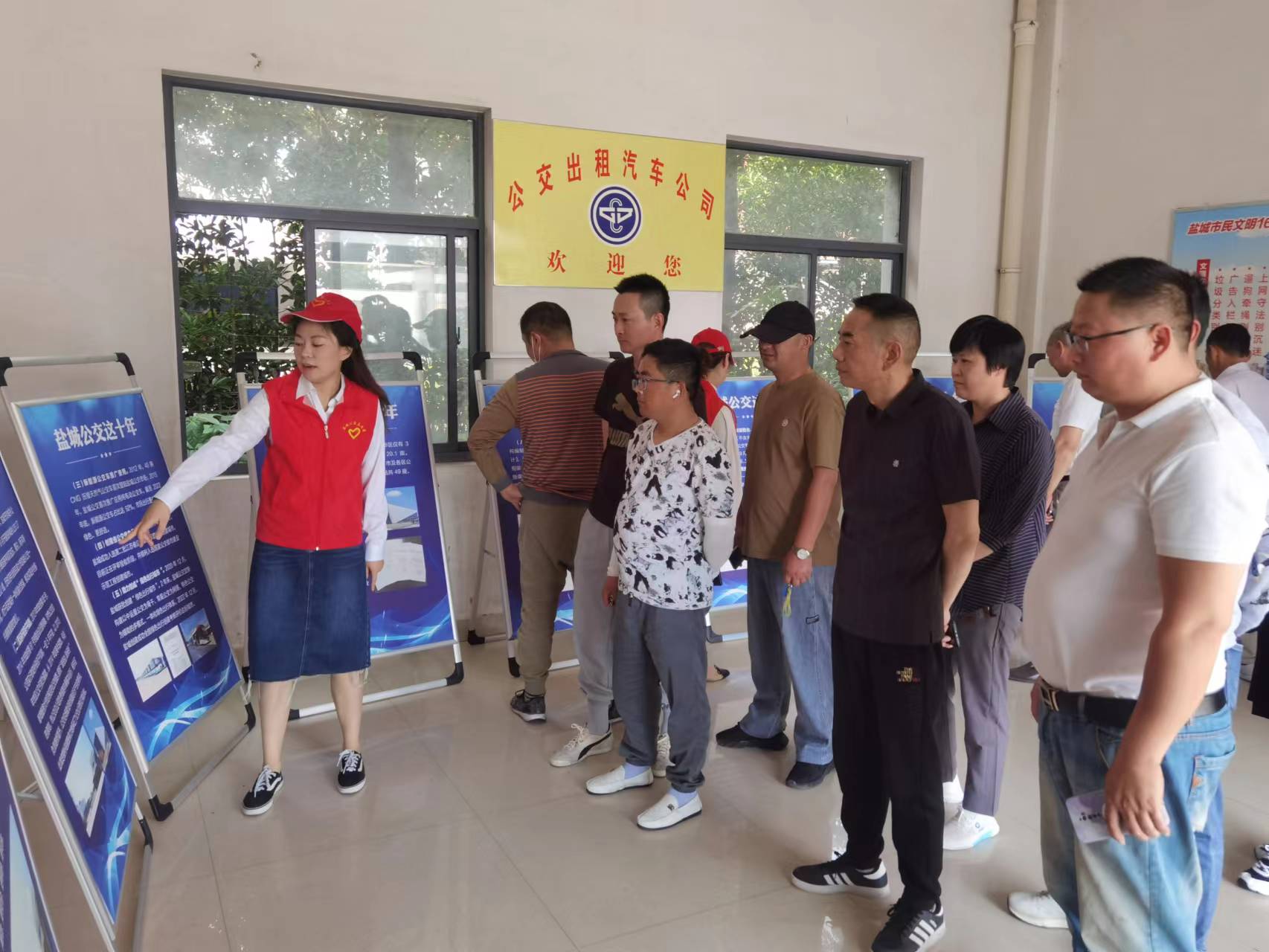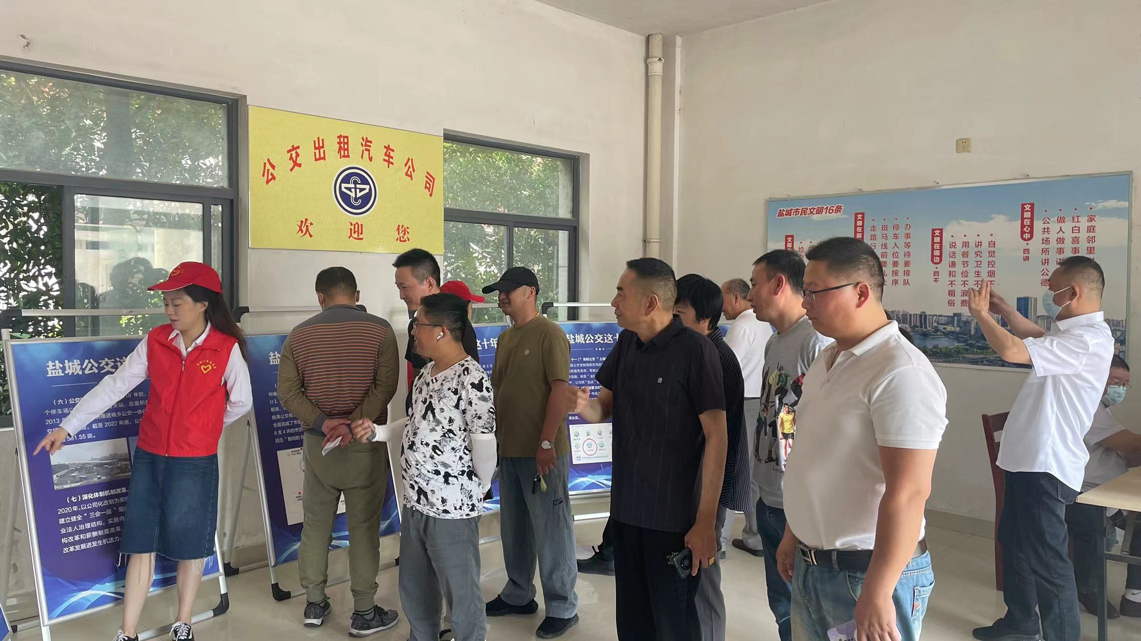 以出租公司辦公樓一樓大廳為展廳,出租公司黨支部的兩名志愿者充當(dāng)起臨時(shí)講解員,為到會(huì)的出租車駕駛員講解了鹽城公交這十年來的發(fā)展歷程。從城鄉(xiāng)公交一體化到新能源車輛的逐步推廣;從場(chǎng)站經(jīng)濟(jì)蓬勃發(fā)展到實(shí)施公交線網(wǎng)革命;從“實(shí)時(shí)公交”的上線應(yīng)用到“一主多元”加速發(fā)展。小小的八塊展牌濃縮了鹽城公交近十年發(fā)展的輝煌巨變,見證了鹽城公交從傳統(tǒng)到智慧,從常規(guī)到優(yōu)質(zhì)的高質(zhì)量發(fā)展,也踐行著鹽城公交“城市發(fā)展先行軍、服務(wù)民生暖心人、市民出行首選項(xiàng)”的企業(yè)使命。鹽城公交這十年的發(fā)展也正體現(xiàn)了黨的十八大以來,我國(guó)在城市交通發(fā)展及推廣方面舉得的輝煌成就。