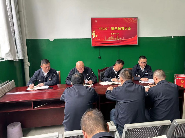 為深入學(xué)習(xí)貫徹黨的二十大精神,堅(jiān)定理想信念  嚴(yán)守政治底線,5月18日 ,修理公司黨支部召開“510”警示教育大會(huì)。修理公司黨支部班子、全體黨員、預(yù)備黨員、發(fā)展對(duì)象和積極分子等三十多人參加了活動(dòng)。